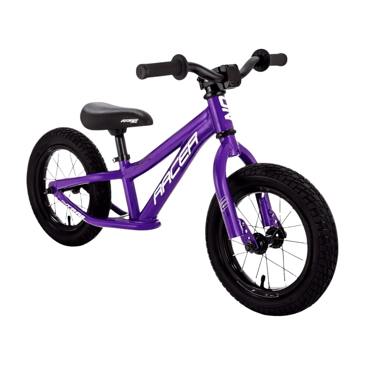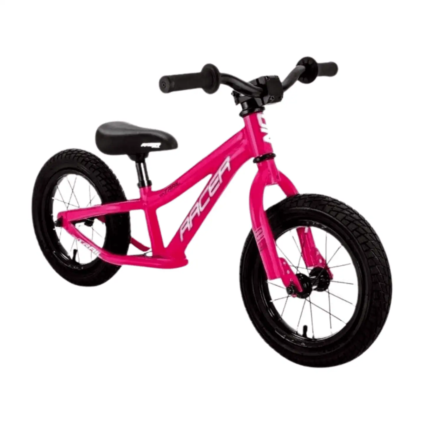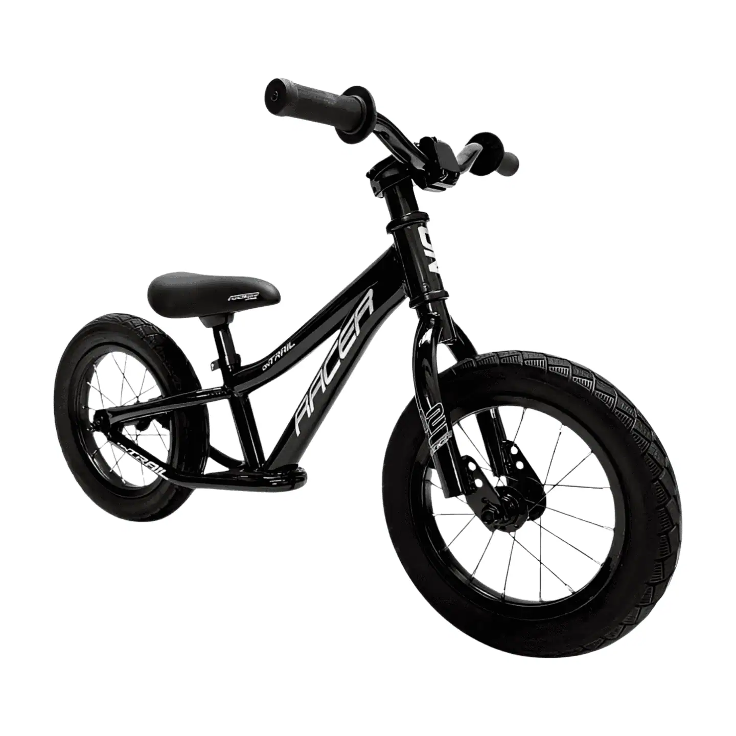 Bicicleta de impulso Ontrail Racer rin 12”, ideal para niños de 2 a 5 años. Marco liviano, diseño BMX y asiento ajustable. Perfecta para aprender equilibrio y divertirse.
